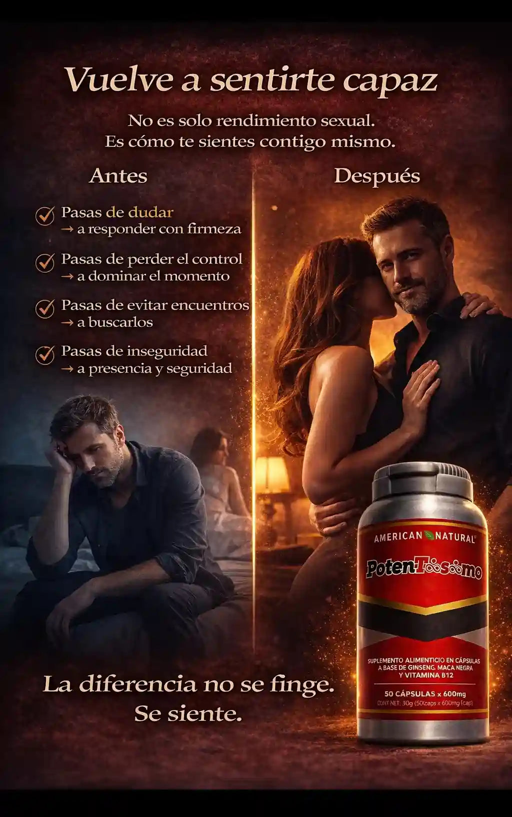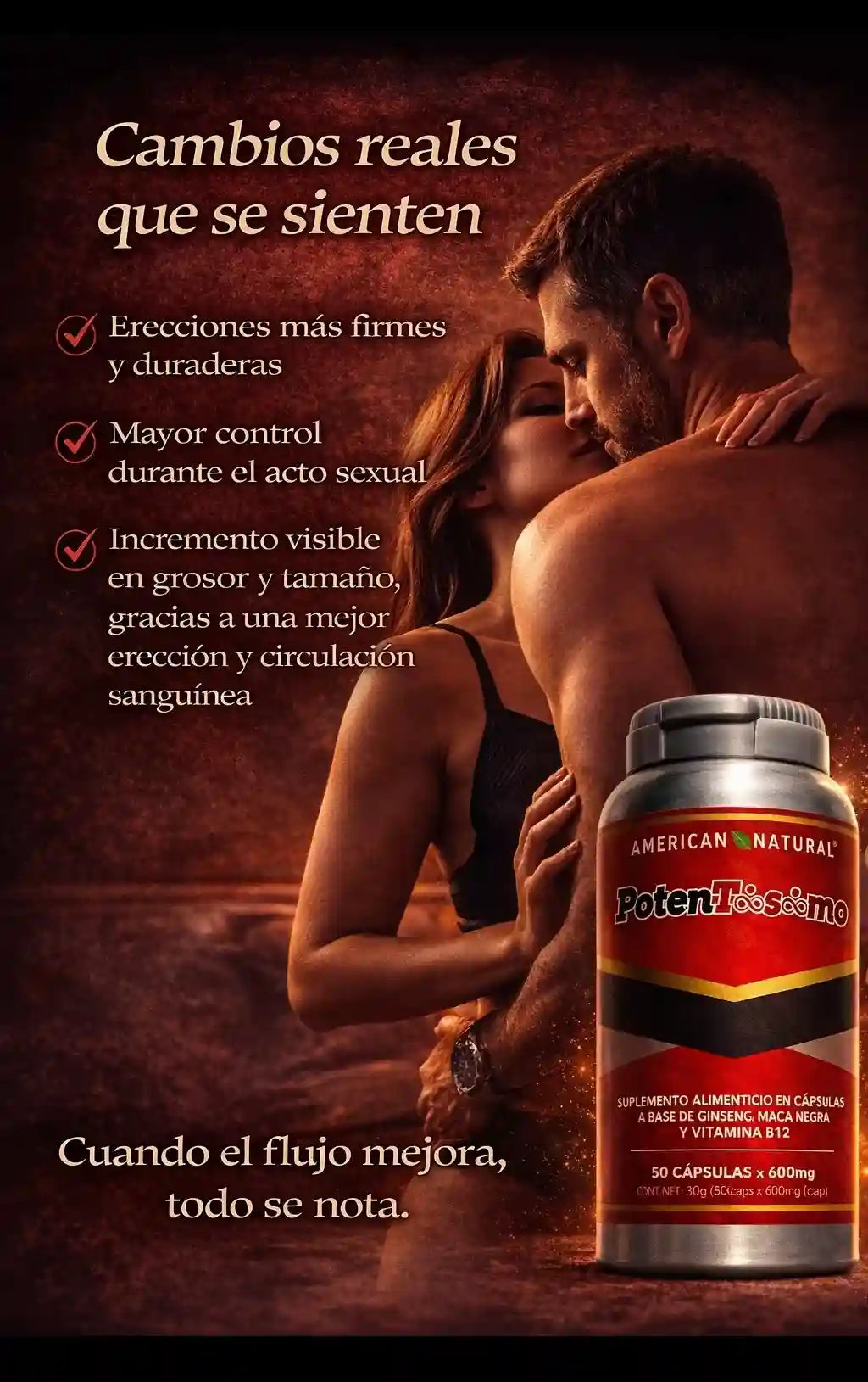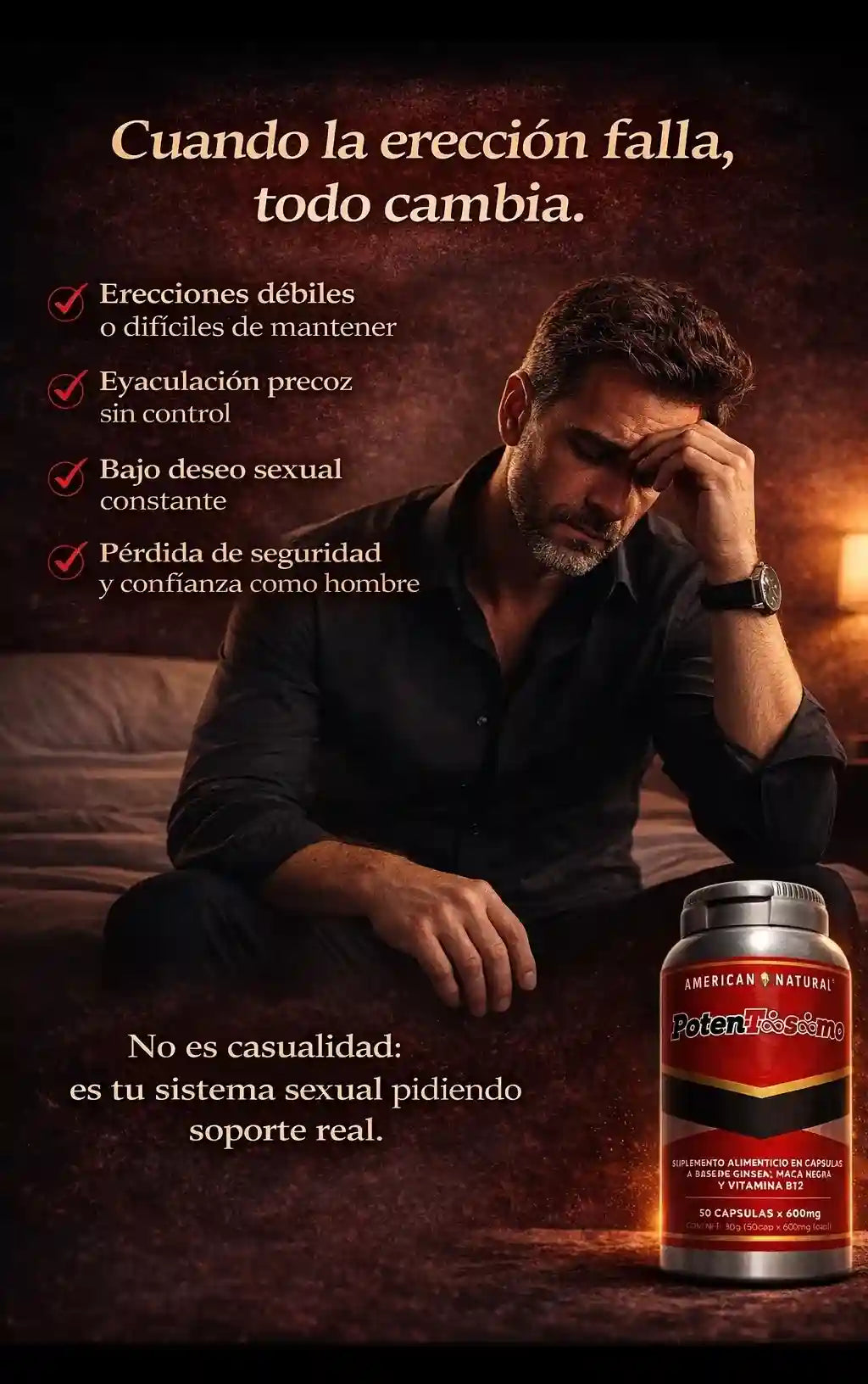 POTENTÍSIMO es un suplemento alimenticio en cápsulas formulado para apoyar el rendimiento sexual masculino, mejorando el flujo sanguíneo, la firmeza de la erección, el control y el deseo sexual de forma progresiva.